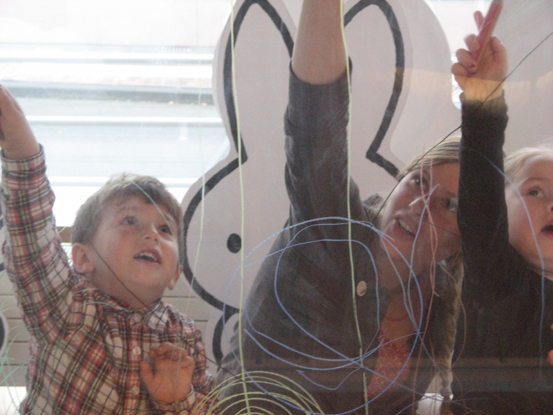 In Kunstspeeltuin 'de wereld van nijntje' wordt volop met kunstenaars getekend door kinderen tot 8 jaar. Ook zijn er oudere broers en zussen die meedoen. Ouders tekenen ook.